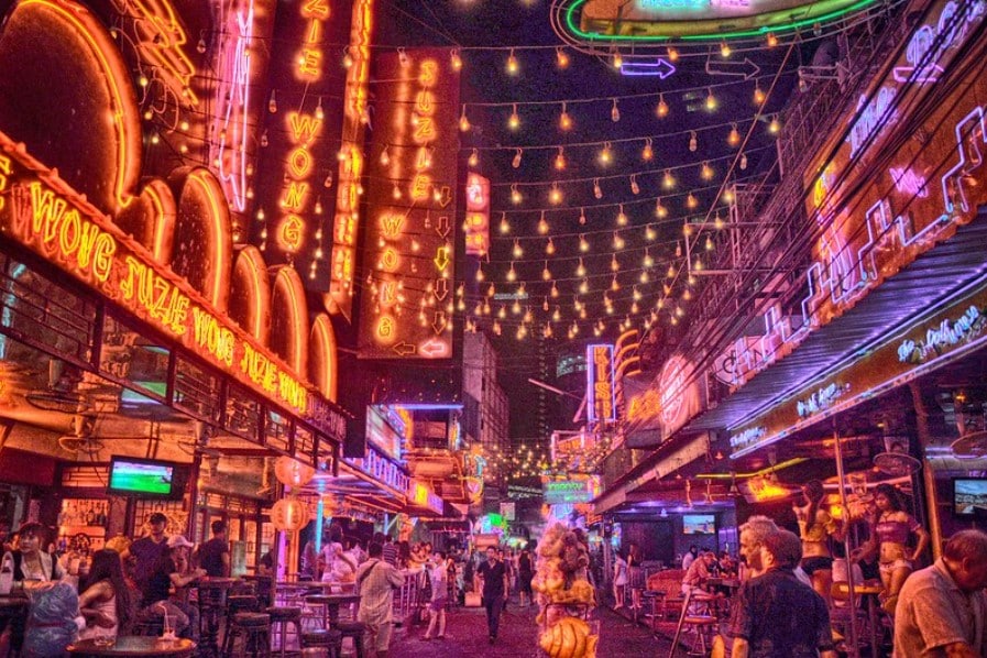 You can stroll along the Patpong area, which is the official Bangkok red-light district. This is where the culture of go-go bars started. The whole street is structured with neon-lit strip clubs, pole dances, and some X-rated shows.